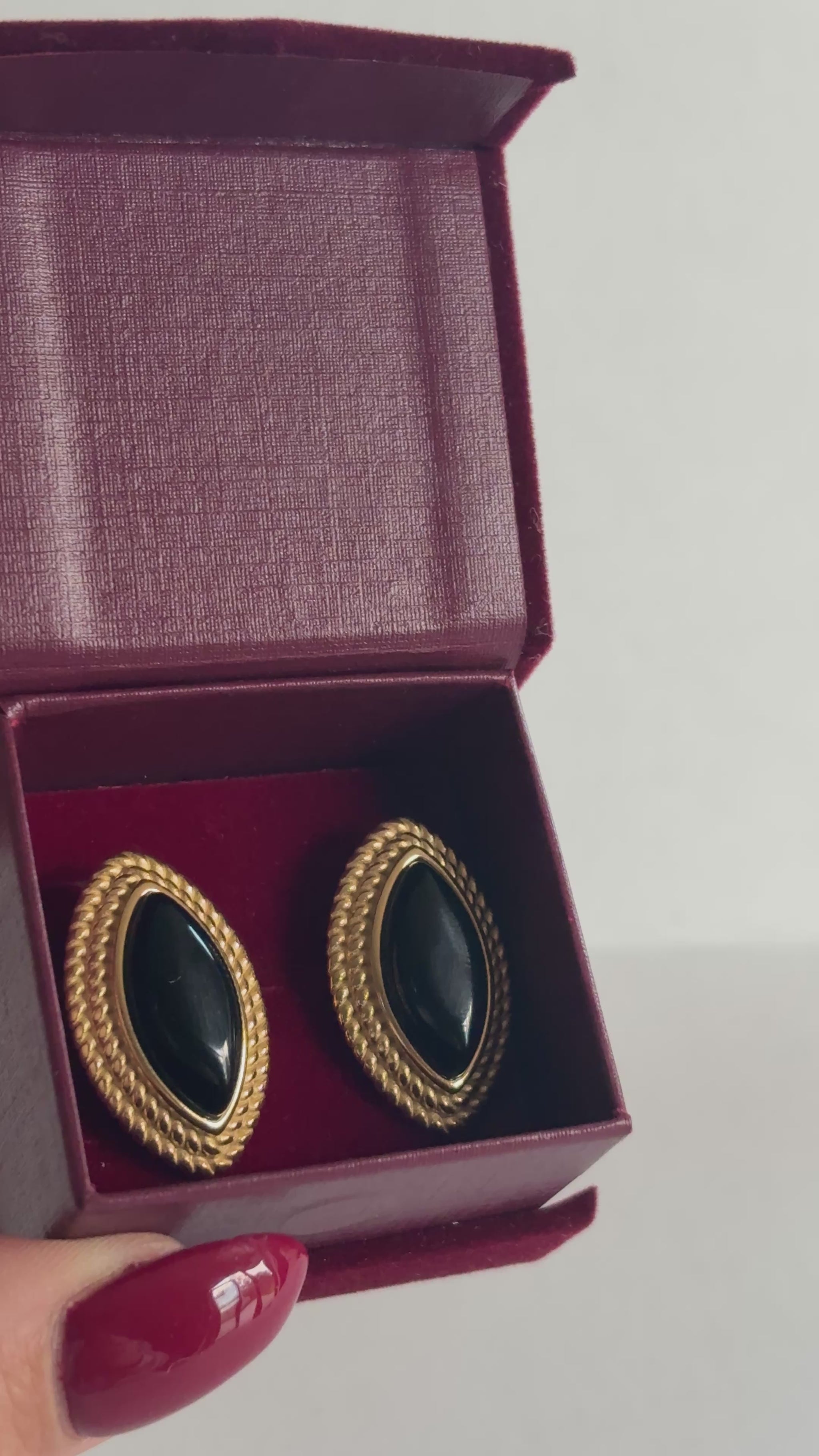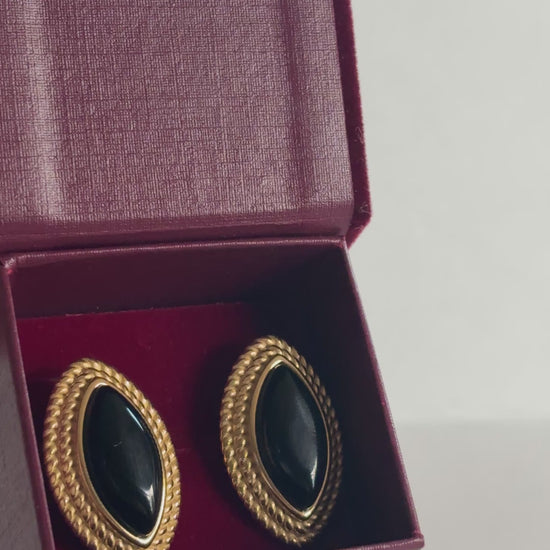 Striking and timeless, The Beatrice Earrings channel vintage glamour with a modern edge. Featuring bold black enamel framed in radiant 18K gold plating, their chunky silhouette makes an unforgettable statement. Elegant yet dramatic, these earrings are perfect for adding a touch of old-world sophistication to both day and evening looks.